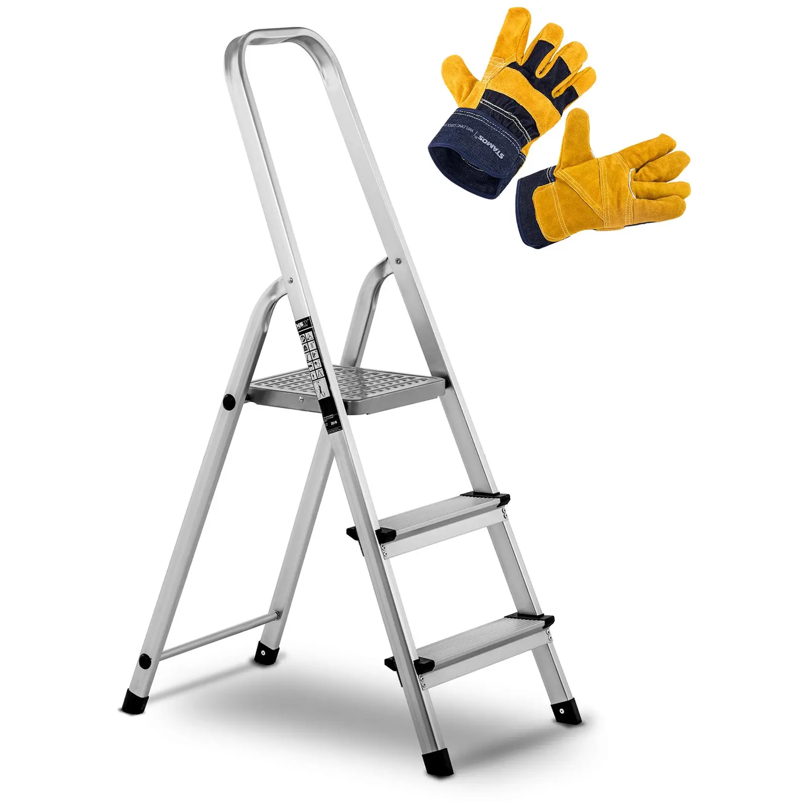 Safety at every step with the aluminium step ladder and work gloves set