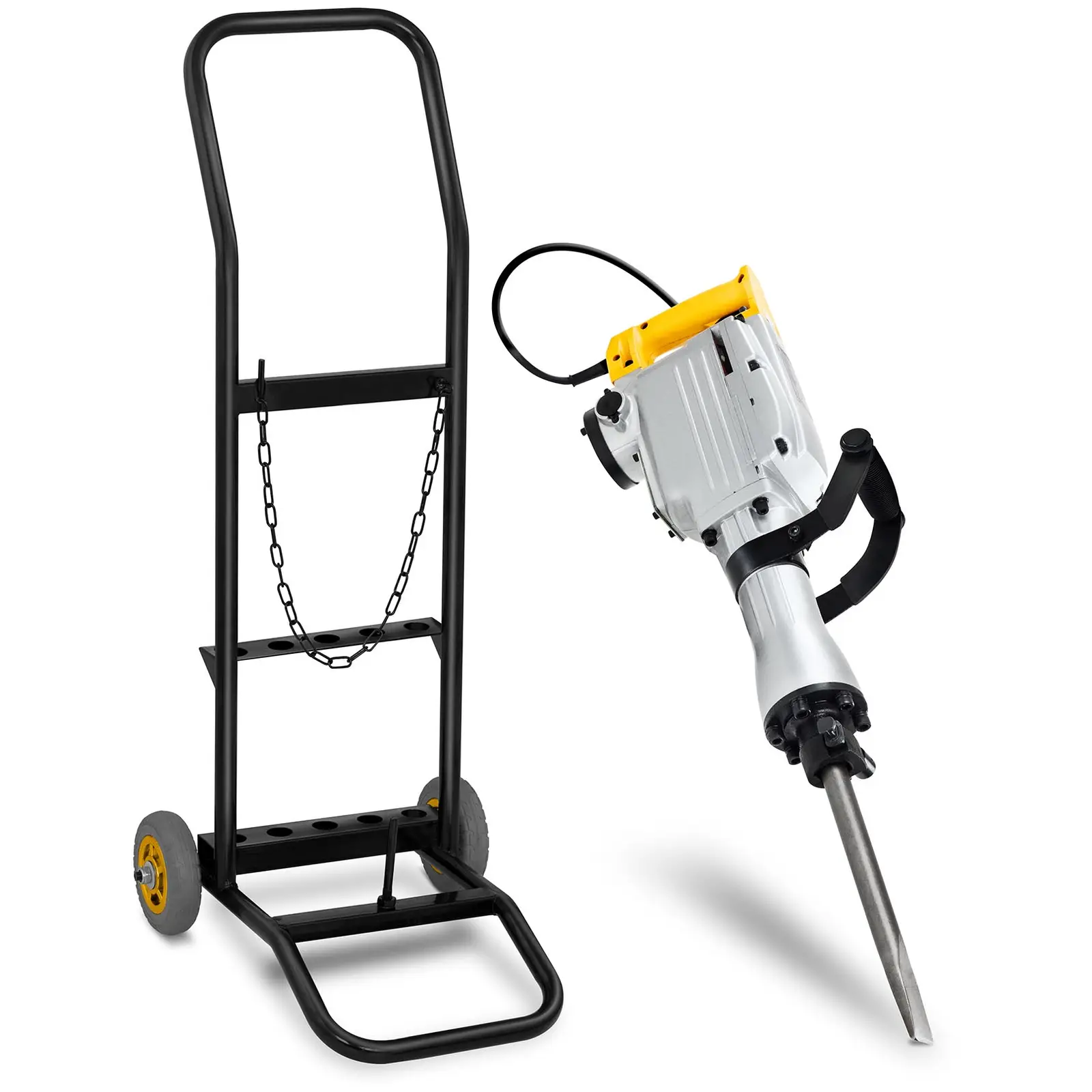 The demolition hammer with trolley ABH-1850T from MSW is the perfect duo! With a high-performance, 1,850-watt motor and impact frequency of 1,900/minute, the demolition hammer is the tool of choice when it comes to construction work and is designed for all kinds of medium to heavy demolition work. Together with its 45 J of impact energy, this heavyweight power tool provides maximum penetrating power and is perfect for breaking up even the hardest surfaces. The accompanying hammer trolley has a solid, long-lasting metal design and boasts a maximum carrying capacity of 30 kg. It is perfect for transporting heavy power tools like demolition hammers or other heavy work equipment.