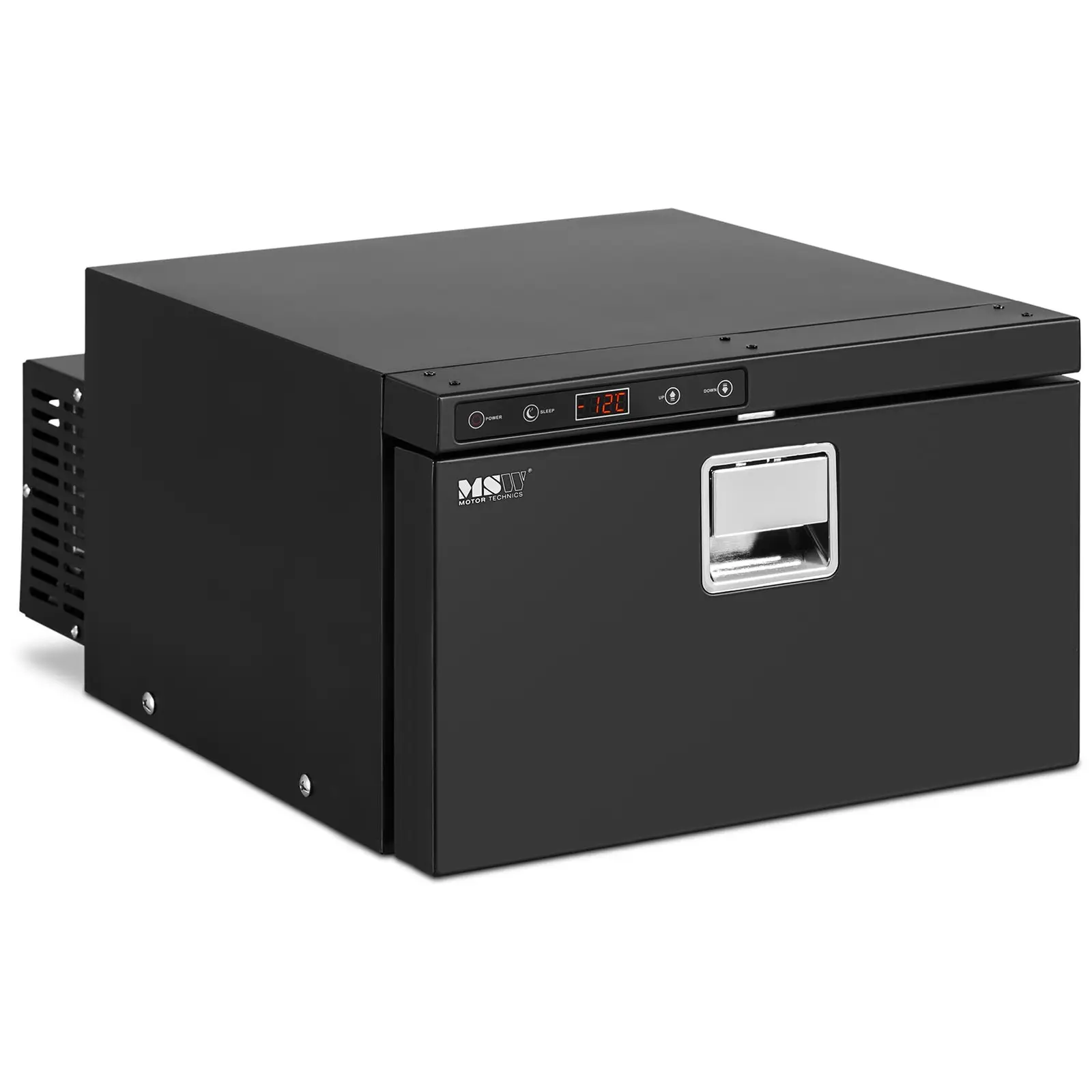 The portable refrigerator works efficiently and reliably with an output of 35 W. The desired temperature is very easily set via the illuminated control panel and maintained in an energy-saving manner because of the solid seal.
