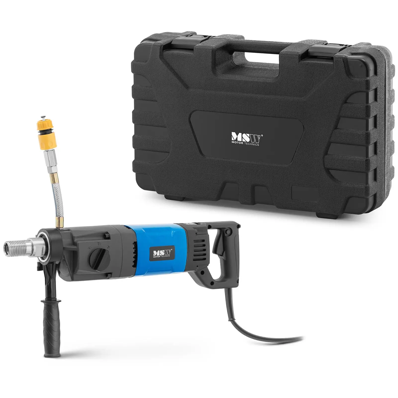 On a construction site, time is money. The machines you rely upon should waste neither. The core drilling machine from MSW reliably drills holes in hard construction materials such as concrete, masonry, or asphalt. You can drill holes up to 165 mm in size when using a drill stand (not included).