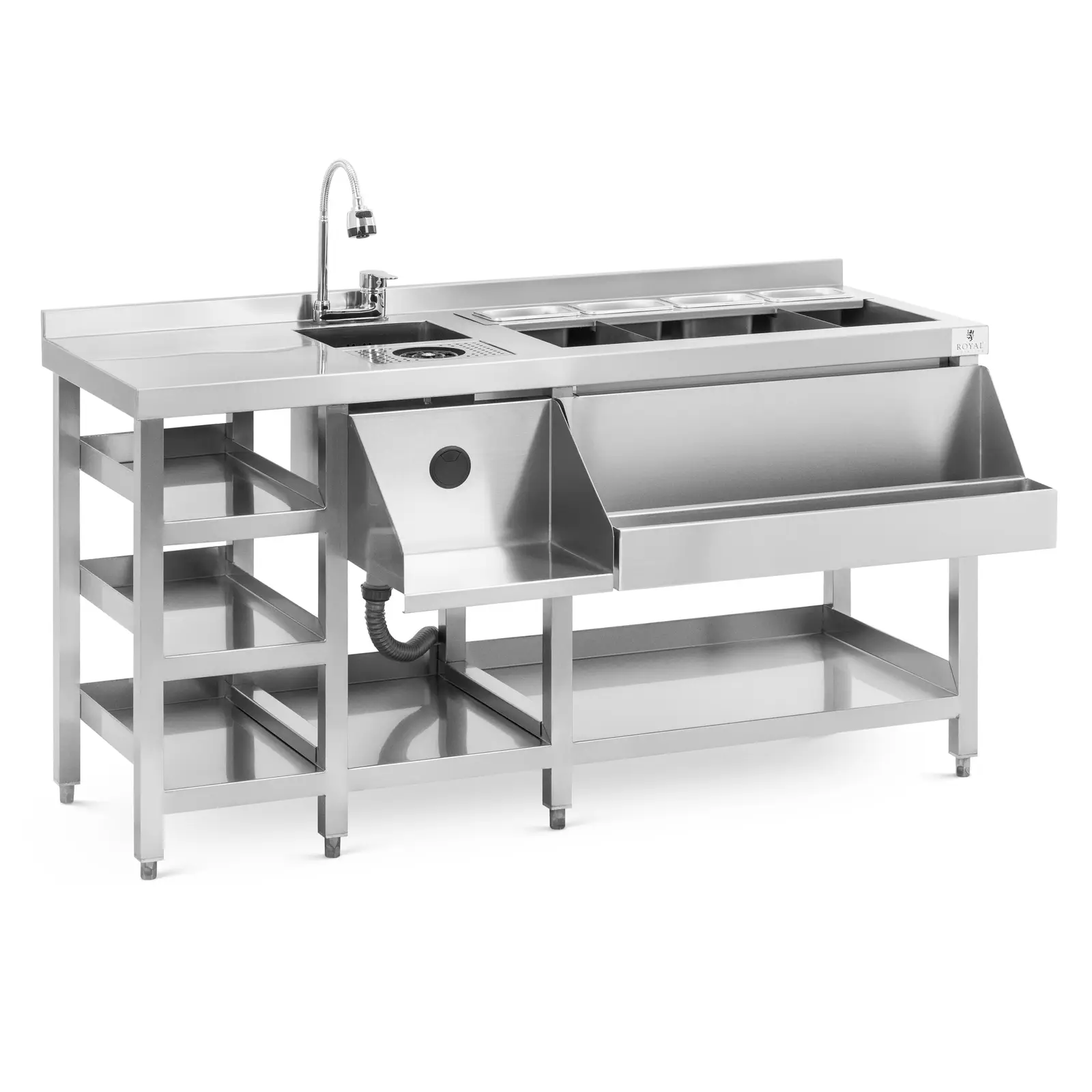 As a bartender, don't you want to have all your things at hand? Mix your drinks with ease at the Royal Catering cocktail station. It is well coordinated to supply all the components such as crushed ice, spirits, lime slices or cocktail glasses right in front of you. Make the most of the space behind your counter and treat your guests to cool cocktails in seconds.