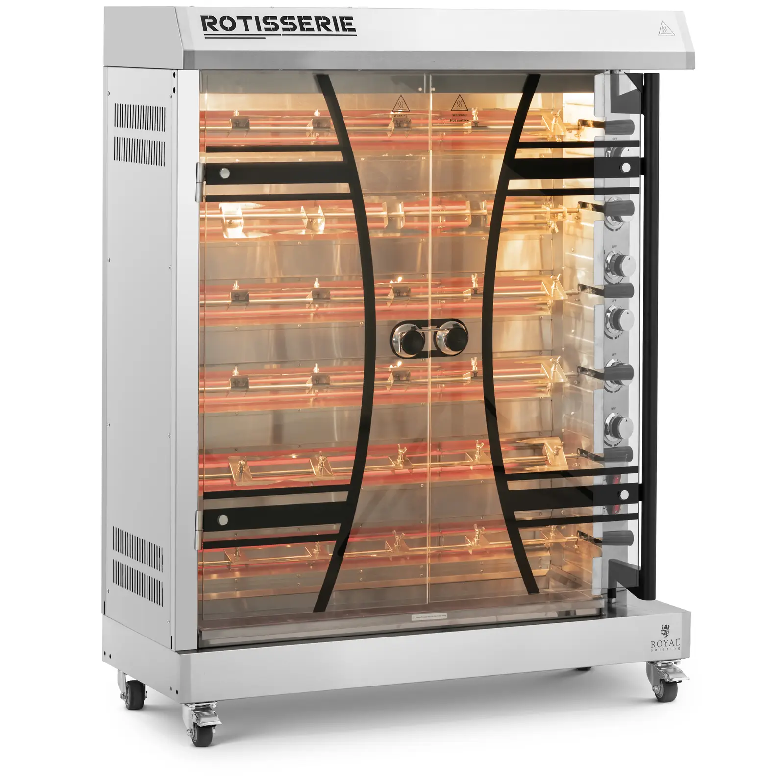 Electric Chicken Grill - 6 skewers for 36 chickens - with lighting and wheels - Royal Catering