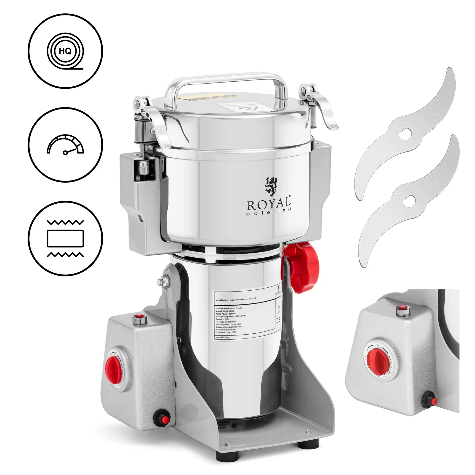 Electric Spice Grinder - 800 g - 17 x 9 cm - 2100 W - Royal CateringElectric Spice Grinder - 1000 g - 20 x 9 cm - 3000 W - Royal CateringElectric Spice Grinder - 2000 g - 21 x 9.5 cm - 3400 W - digital - Royal CateringFactory second Electric Spice Grinder - 2000 g - 21 x 9.5 cm - 3400 W - digital - Royal CateringElectric Spice Grinder - 2000 g - 21 x 9.5 cm - 3400 W - Royal Catering