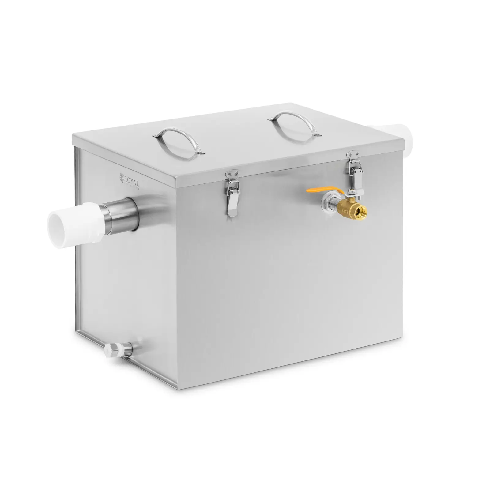 The grease interceptor from Royal Catering can be used in a variety of ways, be it for rinsing, preparation sinks or commercial dishwashers in the catering industry. Use the unit to separate grease and waste from the water before it is discharged into the sewage system. This way, the grease trap prevents both the drain and the drain pipes from becoming blocked. It is therefore the ideal hygiene accessory for all professional kitchens.