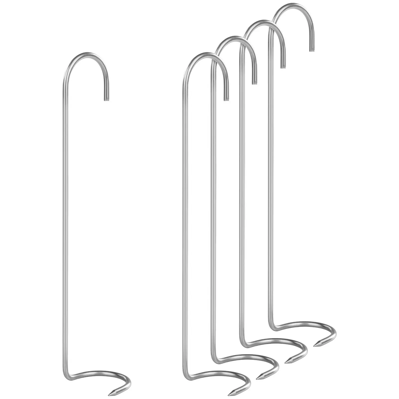 The 5-piece smoker hook set by Royal Catering has been specially designed for smoking fish. The diameters of the claw hooks are space-saving and allow you to easily hang fish. The fish can be hung afterwards without being damaged. The construction of the hooks and their shape ensure that the fish will not fall off the hook during the smoking. You do not need to bother to turn the hooks. The smoker hooks come in a set of 5. They carry up to 5 kg and are made of stainless steel. The hooks can be easily cleaned in the dishwasher. Complement your smoker with the high-quality products from Royal Catering!