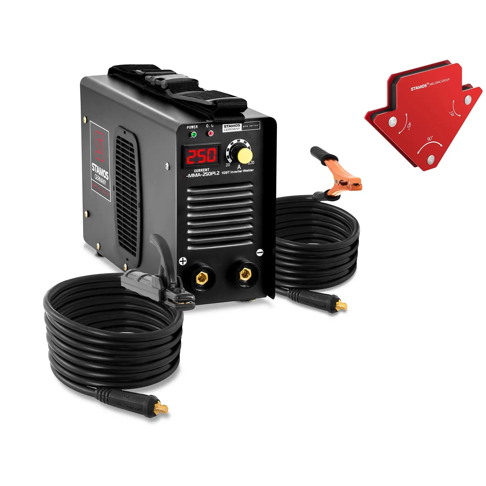 The welding machine arrived in a nice box but it was not packaged very well, one grid was detached and it also seemed already used, however I used it intensively this first month and it works well but, up to thicknesses of 3/4 mm and 2.5 electrodes /3mm, with larger thicknesses and 3.5 and 4 electrodes it doesn't weld well, annoyed I tried it by measuring the output amperage and compared to that shown on the display it is completely different and lower. It is given for 250A but at most it reaches 160A, a shame given the gap. Now I have contacted support who are trying to resolve it but it is still an inconvenience because I can't stay without the welding machine for long and I will have to buy another one. On a positive note, the cables are of high quality, on a negative note, I didn't receive the magnets.