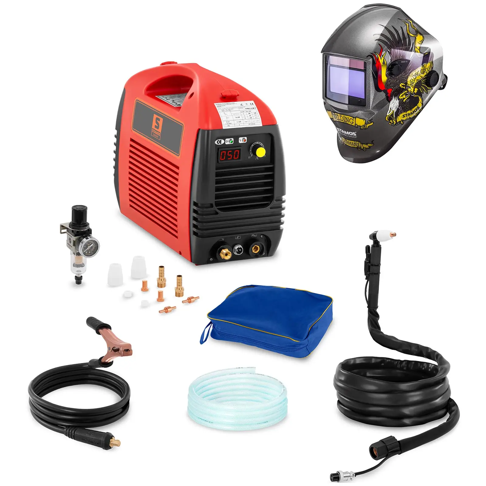 The plasma cutter S-Plasma 50 by Stamos Germany is a robust and highly reliable machine. It has an input voltage of 230 V. Measuring 16.5 x 37 x 28 cm, it is manufactured using lightweight, sturdy materials, weighing only 10.7 kg. The S-Plasma 50 offers cutting current settings between 20 and 50 A, providing great flexibility for all kinds of conditions. Order today to secure your competitively priced S-Plasma 50.