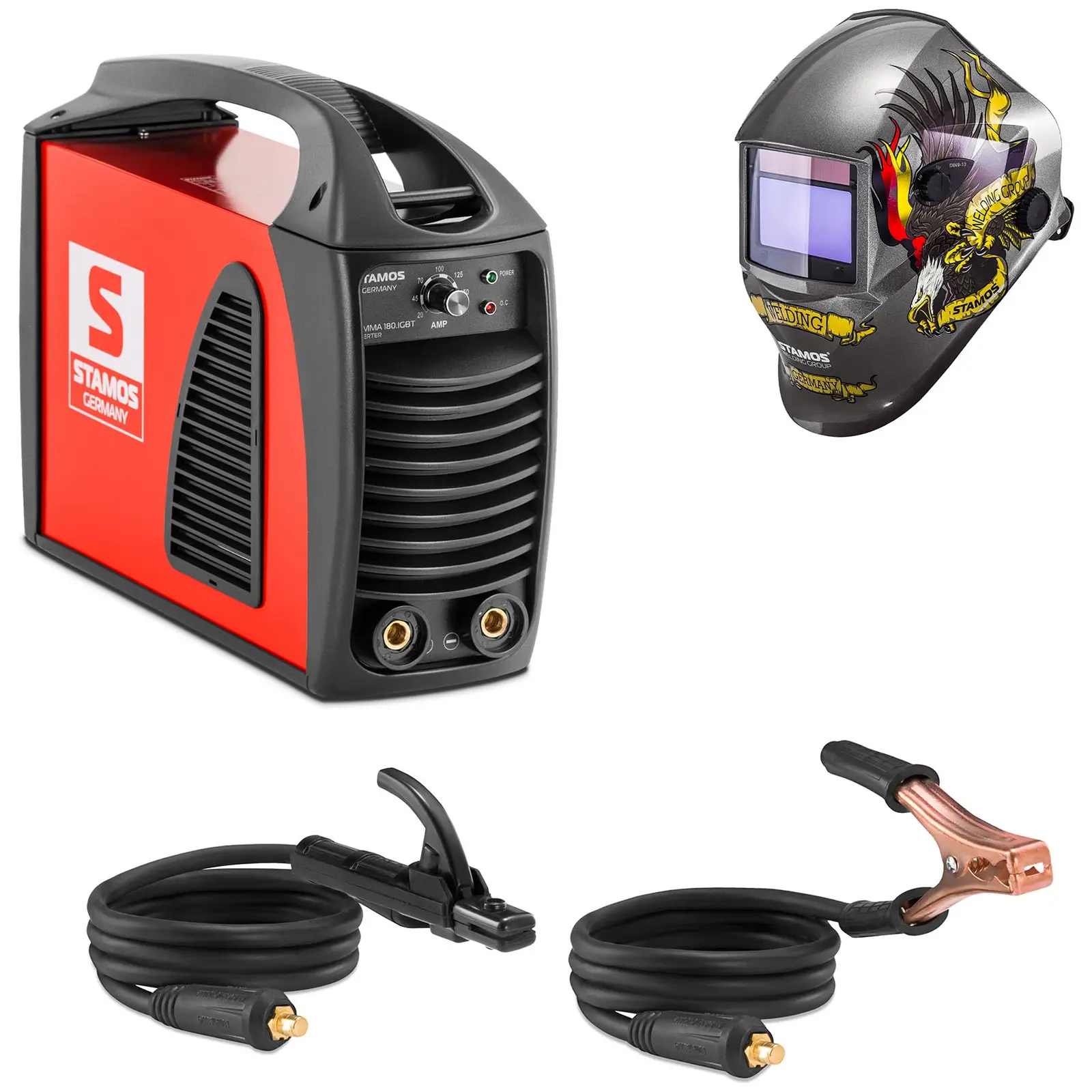 With the S-MMA 180.IGBT electrode welding machine from Stamos Germany, you will find a professional, innovative and high-quality device for various repair and maintenance tasks. The welding machine is suitable for electrode welding with a direct current.