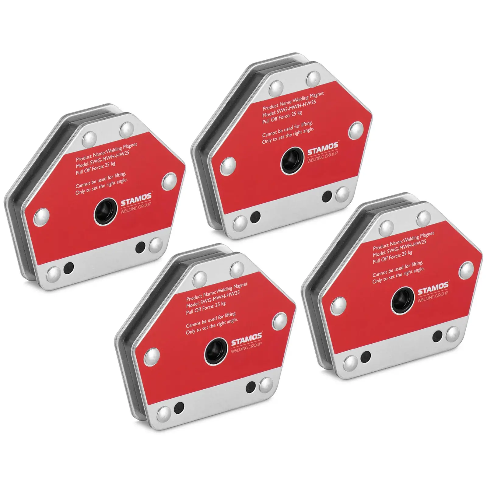 The set of 4 magnetic welding holders have been equipped with a solid steel casing which guarantees high durability and resilience. The robust steel work ensures continuous dimensional stability, so that the welding angles fit perfectly even under pressure. The easy-care material is simply wiped clean.