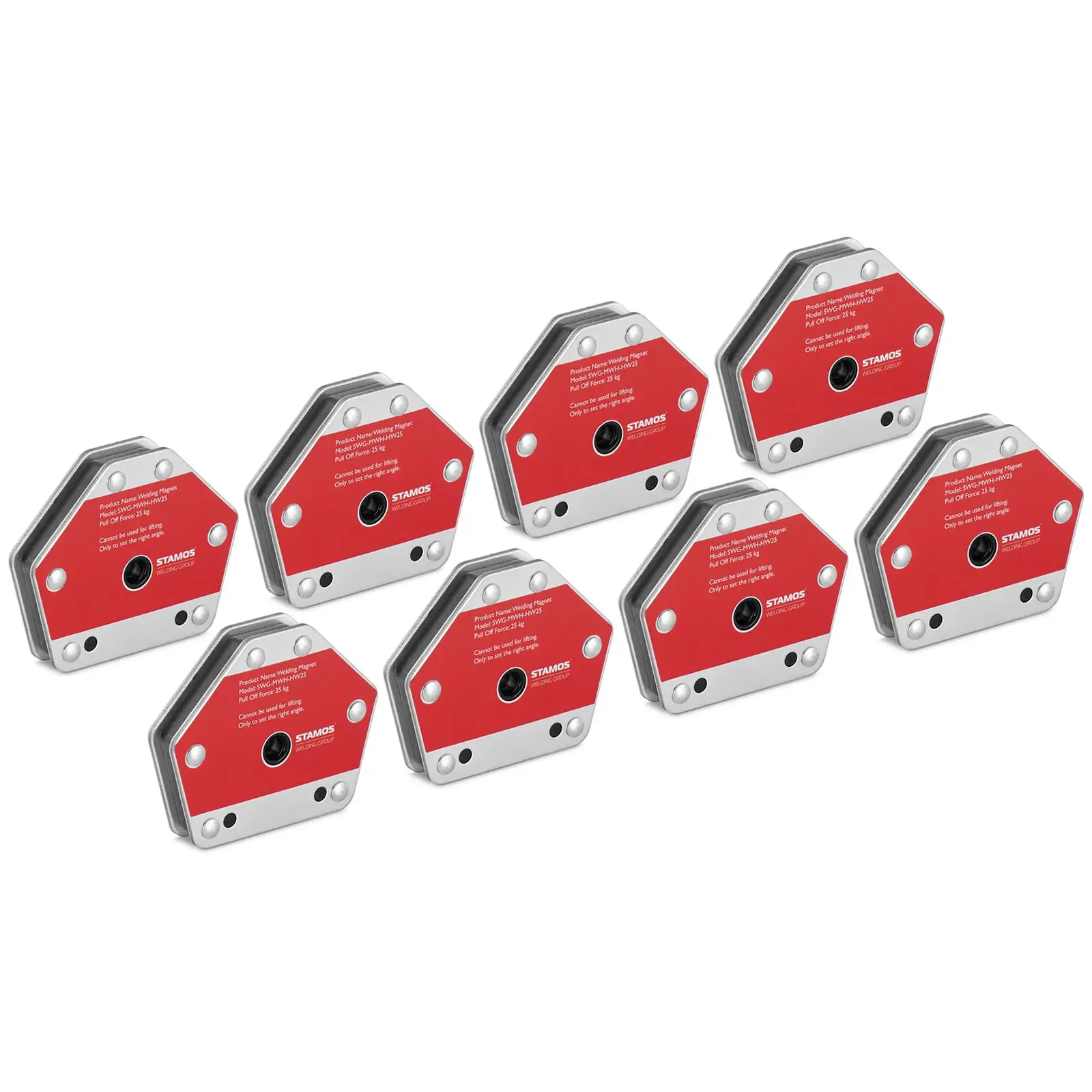 The set of 8 magnetic welding holders have been equipped with a solid steel casing which guarantees high durability and resilience. The robust steel work ensures continuous dimensional stability, so that the welding angles fit perfectly even under pressure. The easy-care material is simply wiped clean.