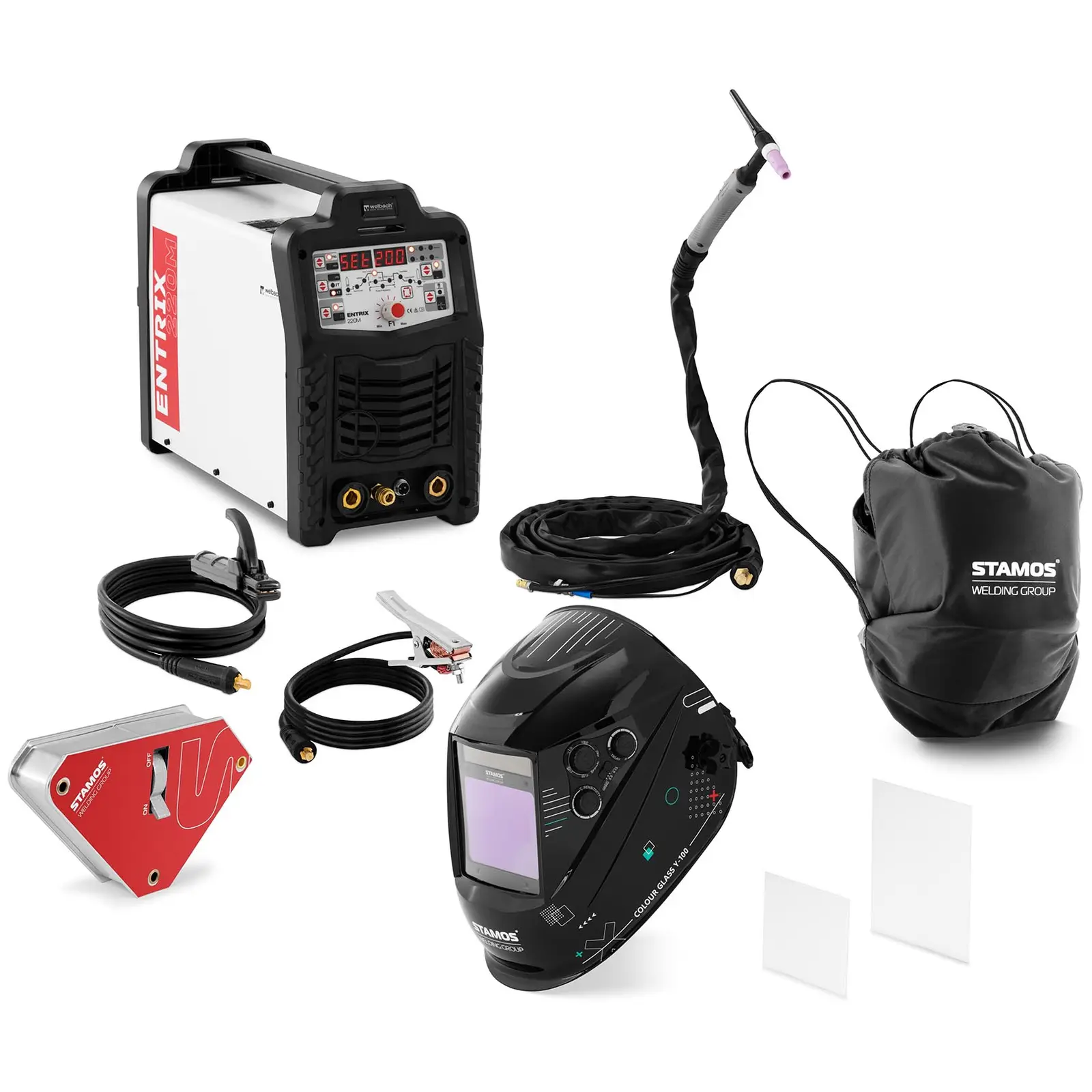 With the AC DC welder, you can weld not only aluminium, but also steel, stainless steel, copper and other metals precisely and in high quality. It convinces with its clear digital menu navigation, quick change of functions and the option to save settings. For your safety, the Colour Glass Y-100 welding helmet is made of the indestructible TECAMID 66 material blend. Thanks to the true colour view, you can see all the details even more precisely. With the welding angle, you hold workpieces together with an adhesive force of 55 kg at angles of 45° and 90°.