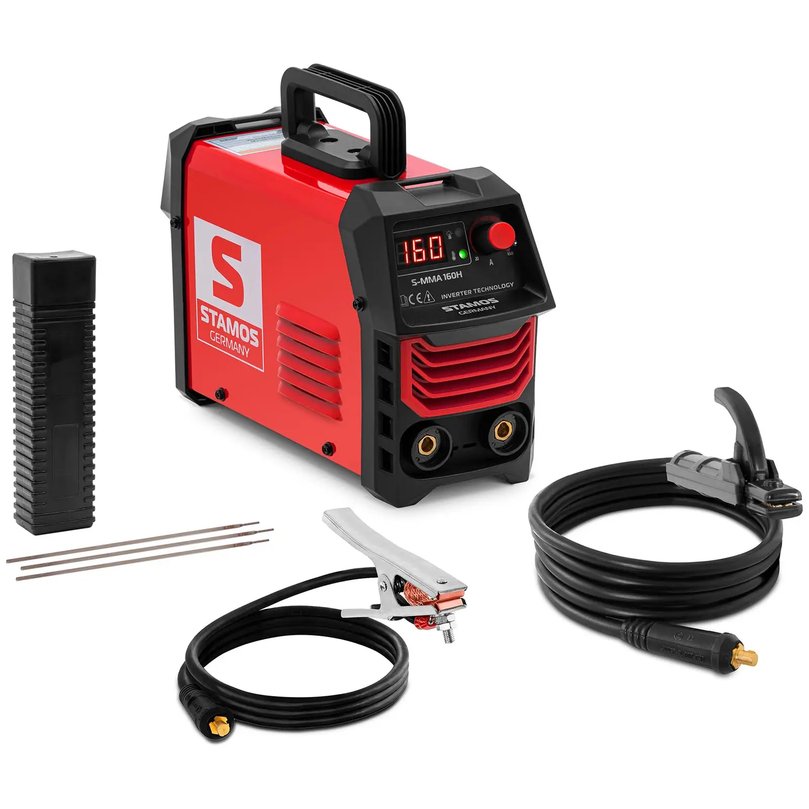 You want a compact electrode welder that you can use in a variety of ways and that impresses you with features such as fast ignition, a stable arc and little welding spatter? Then pick up the hand held MMA welder from Stamos Welding Group! Thanks to the latest technologies and numerous functions, the electrode welder meets all standard work requirements. The low-hydrogen iron powder electrode (5 kg included), which has a strong basic coating, convinces with excellent welding properties.