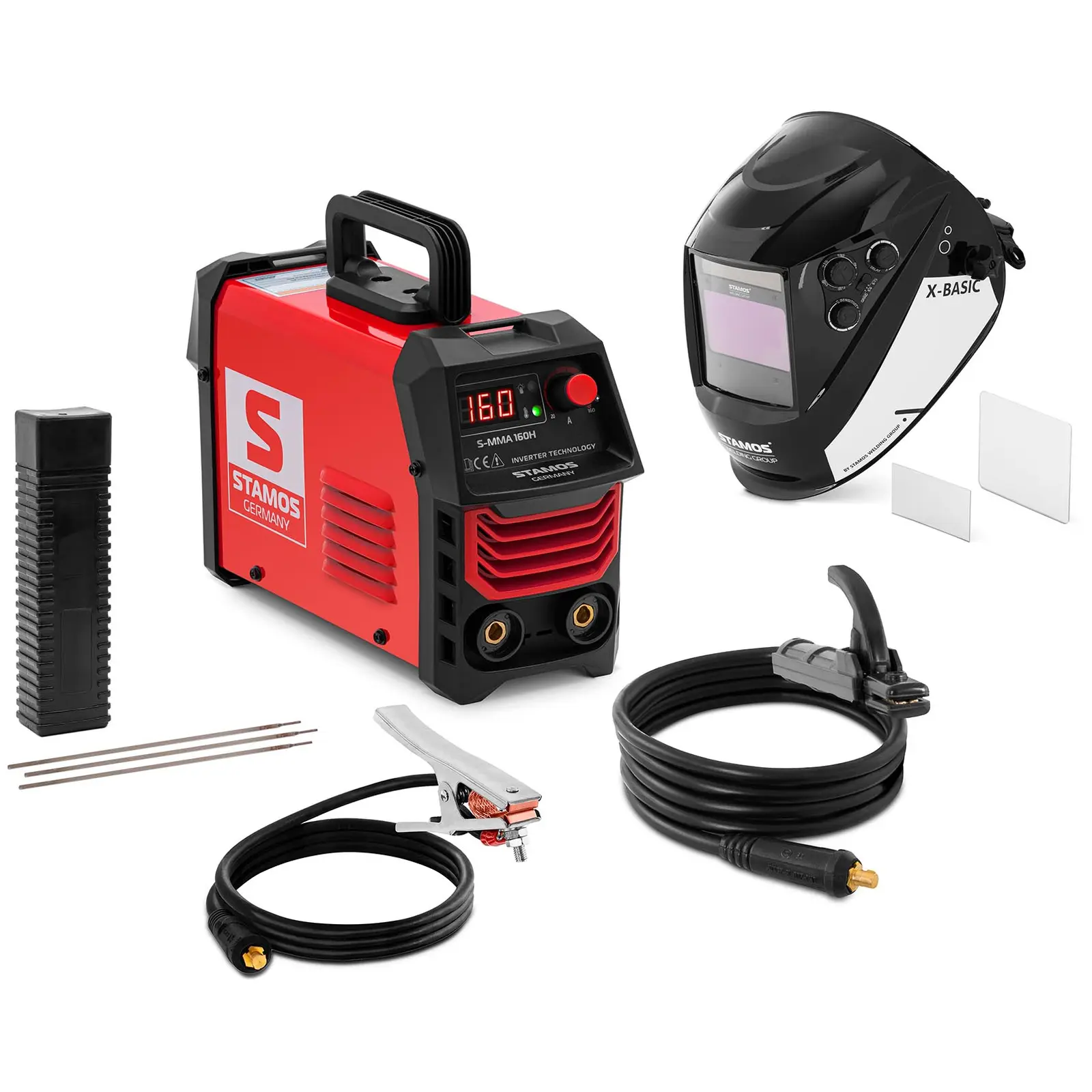 You want a compact electrode welder that you can use in a variety of ways and that impresses you with features such as fast ignition, a stable arc and little welding spatter? Then pick up the hand held MMA welder from Stamos Welding Group! Thanks to the latest technologies and numerous functions, the electrode welder meets all standard work requirements. The X-Basic welding helmet ensures your safety. Thanks to the true colour view, you can see all the details even more precisely. The low-hydrogen iron powder electrode (5 kg included), which has a strong basic coating, convinces with excellent welding properties.
