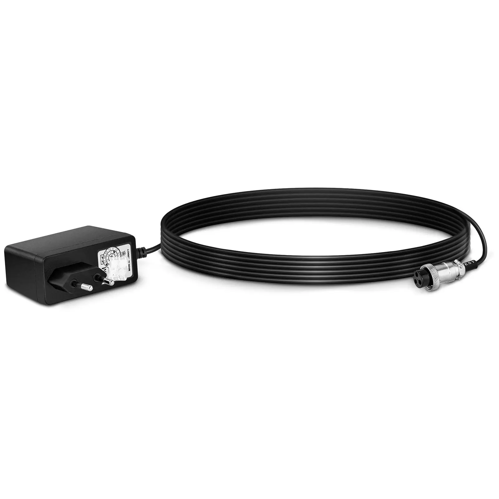 The power cord converts 230 V alternating current into direct current with a voltage of 7.8 V and a current strength of 1.2 A. It is the optimal scale accessory for TEM models with a MIC 3 pin connection, which allows you to safely connect the power adaptor to the scale. Thanks to the long power cable, the connection is easy to make. With these performance values you can ensure the operation of the scale or charge the battery to continue using the scale without an external power connection.