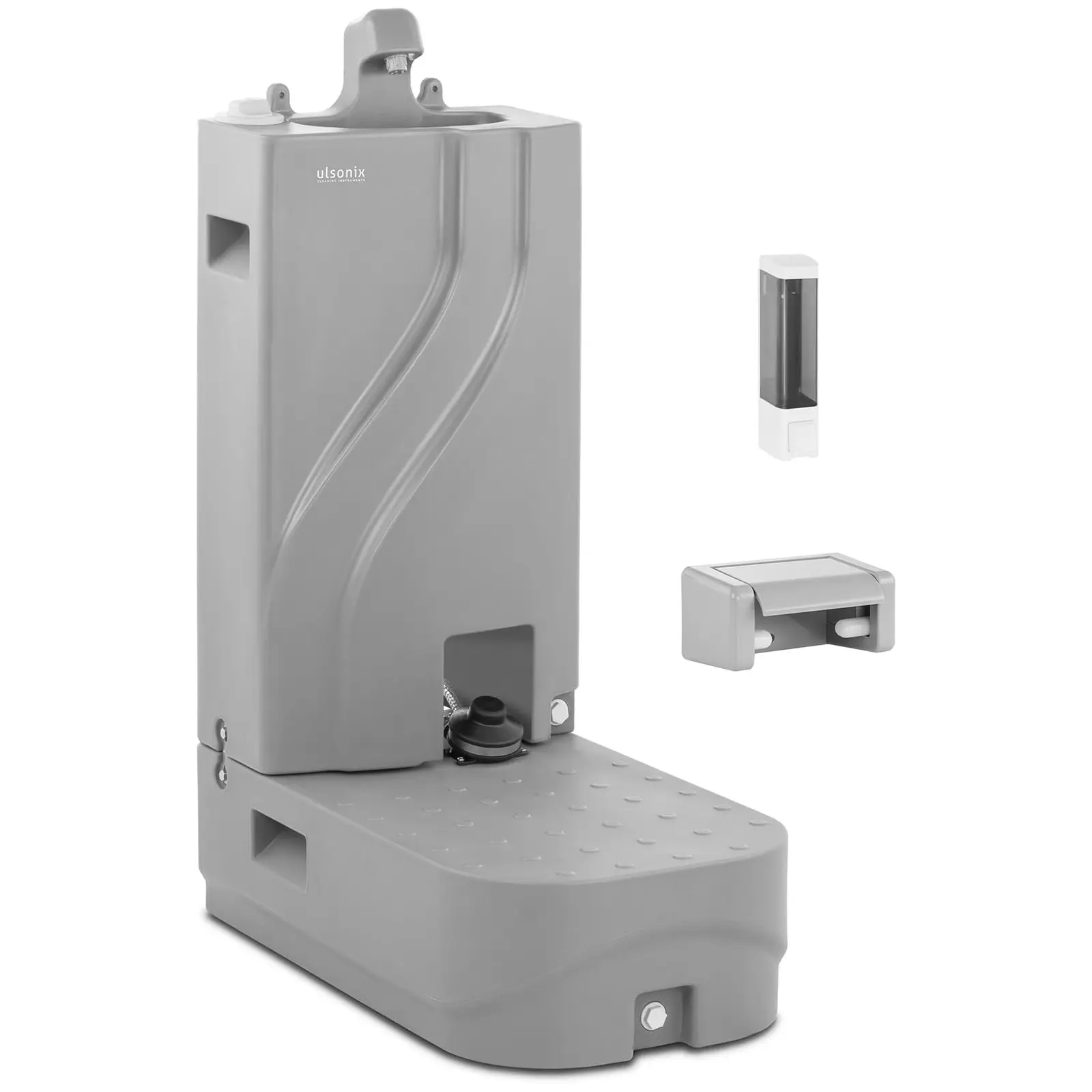 Not every market has a connection to a water supply, but you still want to be able to wash your hands or clean objects while you work. So become largely independent with your water supply and use the portable sink from ulsonix! Whether you're camping, at the market or in a small street stand, it provides plenty of water for quick rinsing without an external water supply. Or offer your customers the chance to wash their hands!