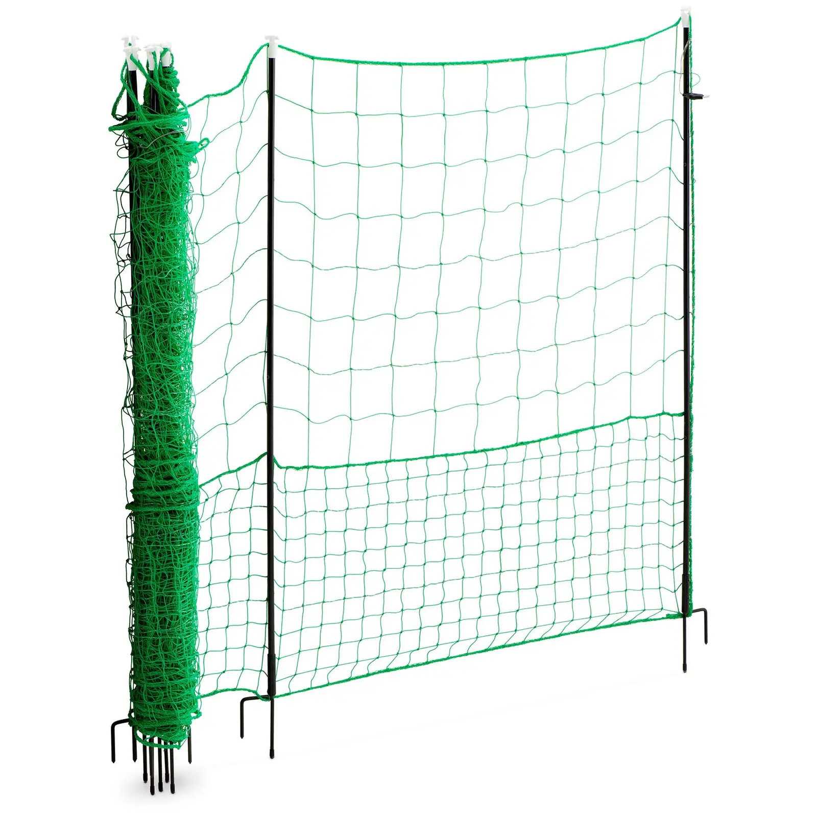 With a net length of 15 m, you can cover a large area for your poultry. If required, combine several chicken nets with each other or integrate a door into the mobile chicken fence. With an electric fence (not included), you can energise the chicken fence and optimally increase the protection of your animals. Use the poultry fence's mesh size of 10 x 10 cm at the top and 4.5 x 4.5 cm near the bottom to create a safe place for your chickens, geese, turkeys or ducks. Thanks to a height of 125 cm, your poultry will not climb over the net.